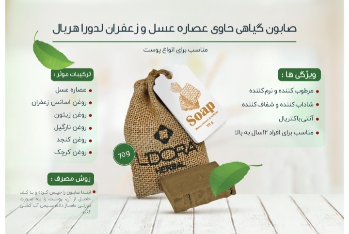 صابون گیاهی حاوی عسل وزعفران لدوراهربال۷۰ گرمی